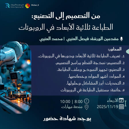 ورشة من التصميم إلى التصنيع: الطباعة ثلاثية الأبعاد في الروبوتات
