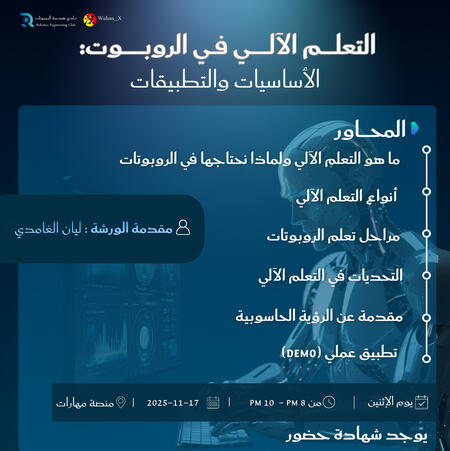 ورشة التعلم الآلي في الروبوتات: الأساسيات والتطبيقات